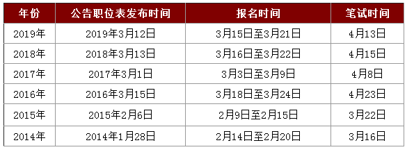 以下為歷年廣東公務(wù)員考試時(shí)間,可供考生參考: